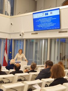 In the continuation of her presentation, Ineta Ziemele spoke about the parliament’s role in executing the standards of ECHR. She noted that the parliament directly reflected the general public understanding of human rights, separation of powers and rule of law. ECHR also shapes the legal framework of the legislative process in Latvia.