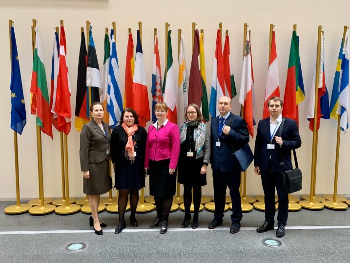 Delegation of the Constitutional Court of the Republic of Latvia with Judge of GCEU Inga Reine, Judge’s Assistants Vineta Bei and Ieva Freija, lawyer of the Court of Justice of the European Union. Photo: Constitutional Court of the Republic of Latvia.