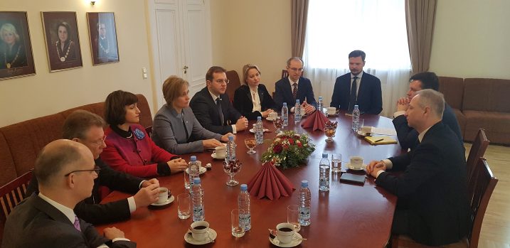 Today, on 21 March, Minister for Justice Jānis Bordāns and Head of the Minister’s Bureau Aldis Bukšs paid an official visit to the Constitutional Court. The delegation from the Ministry of Justice was welcomed by the Judges of the Constitutional Court in full composition. During the visit, the parties discussed current matters related to the judicial power as well as focused on several issues regarding reinforcing the rule of law in Latvia and fostering public trust in the judicial power.