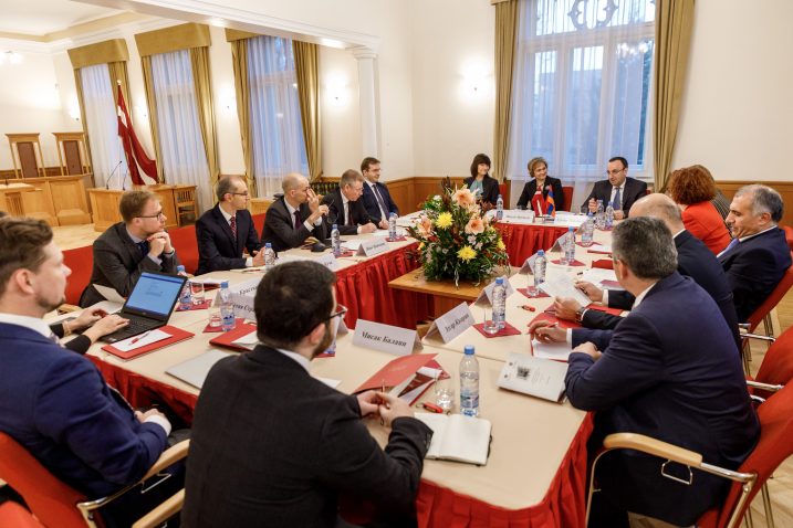 Delegation of the Constitutional Court of the Republic of Latvia with the delegation of the Constitutional Court of the Republic of Armenia. Photo: Toms Norde.