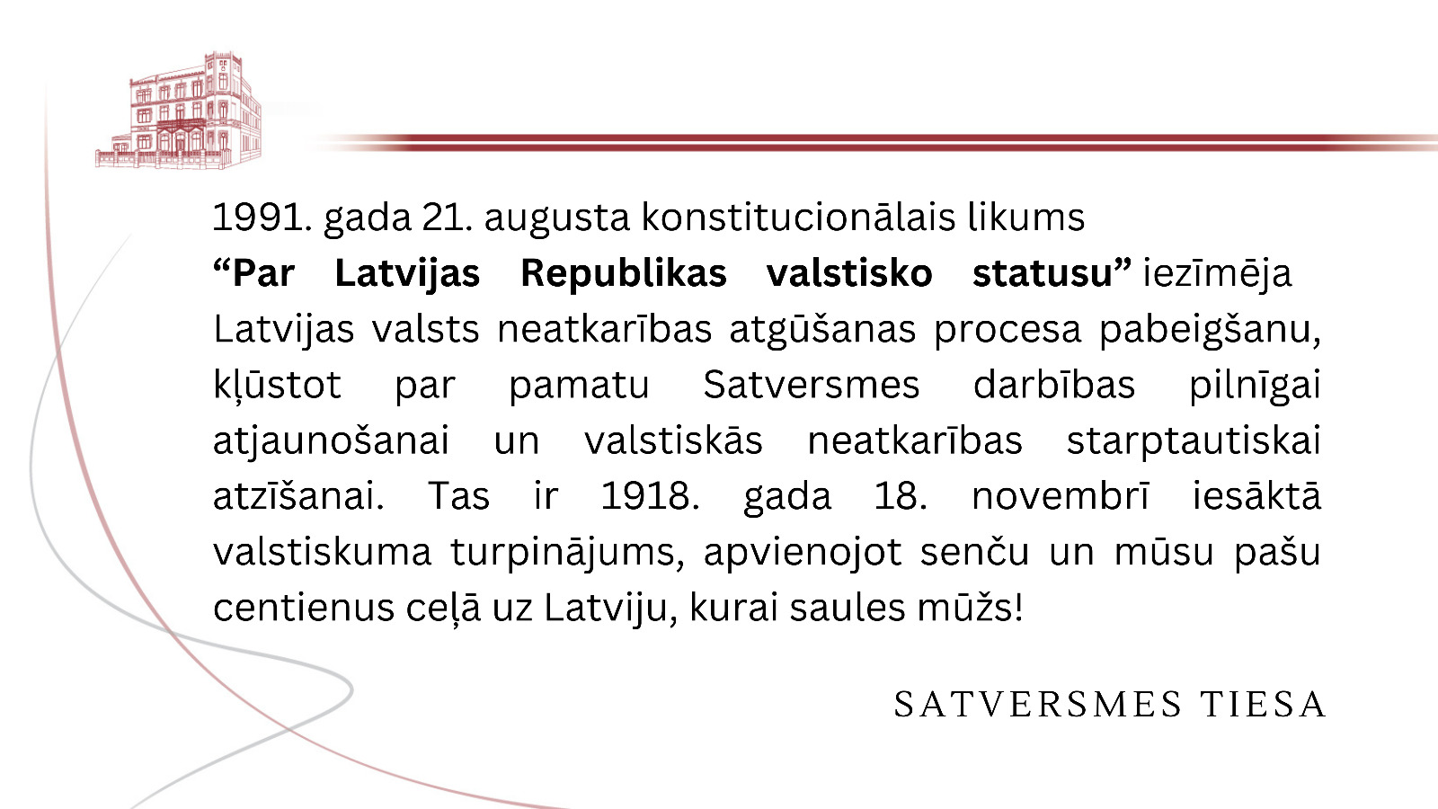 Satversmes tiesa sveic konstitucionālā likuma “Par Latvijas Republikas valstisko statusu” pieņemšanas dienā!