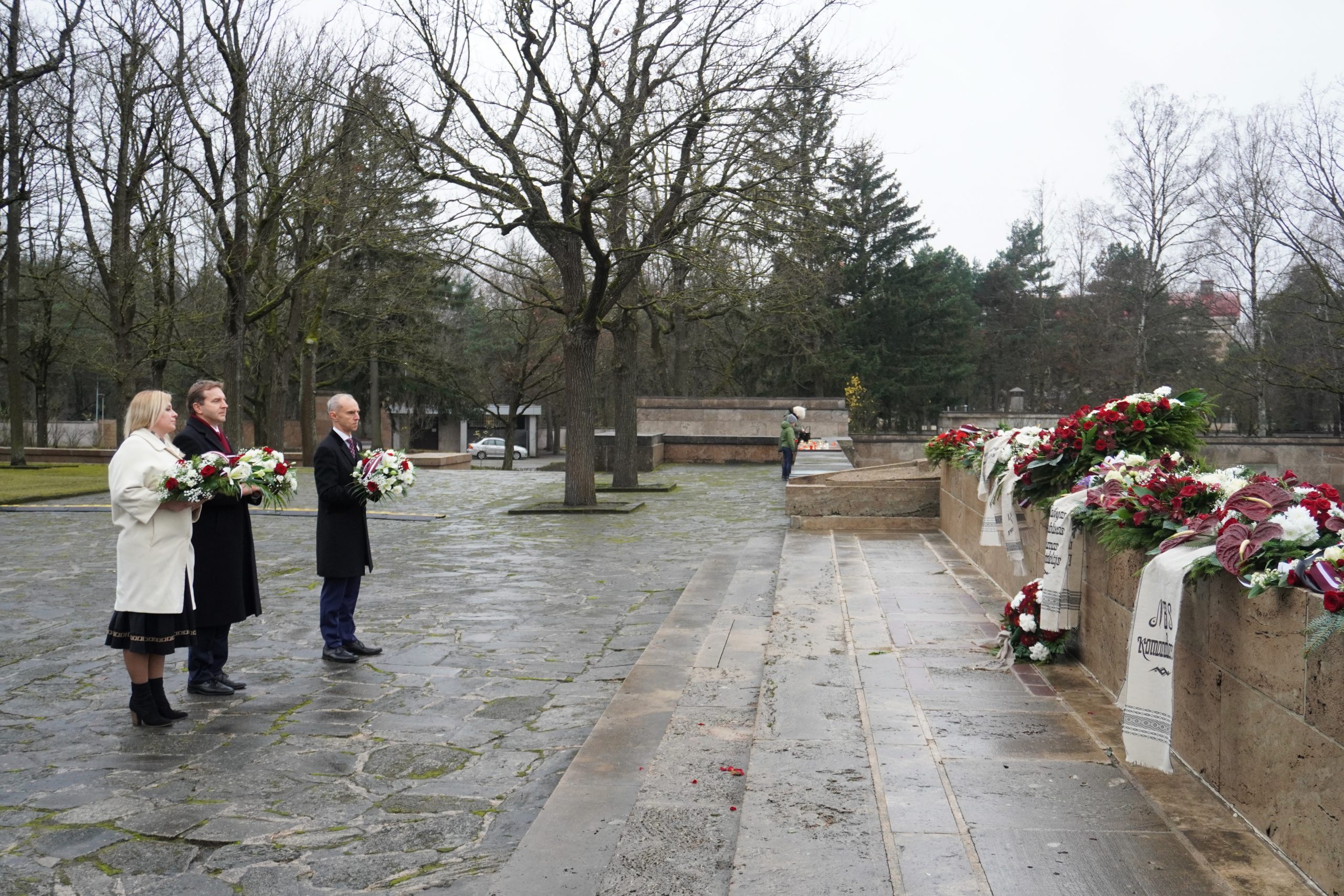 Satversmes tiesas priekšsēdētājs Aldis Laviņš, priekšsēdētāja vietniece Irēna Kucina un tiesnesis Artūrs Kučs šodien, Lāčplēša dienā, nolika ziedus Brāļu kapos, lai godinātu Latvijas brīvības cīnītāju piemiņu.